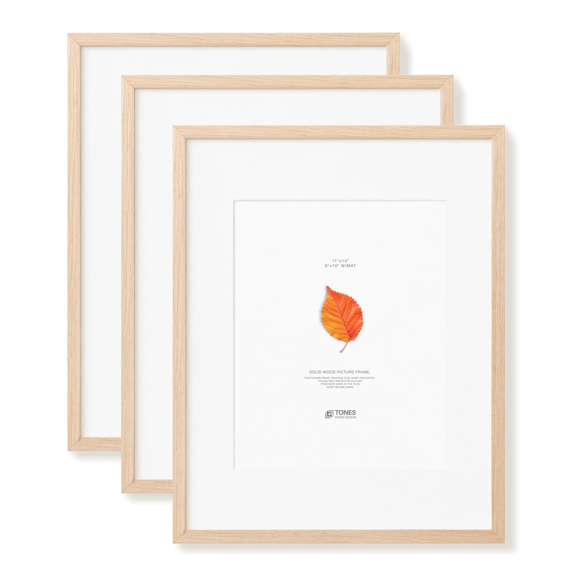 TONES FRAME DESIGN Solid Oak Wood 11x14 Picture Frame with Mat for 8x10 Natural Photo Frame Set of 3 Picture Frame for Wall Home Decor